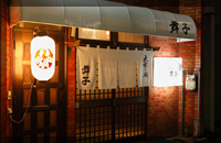 国道41号線の歩道橋下、白暖簾・白地に朱色の提灯が目印です。